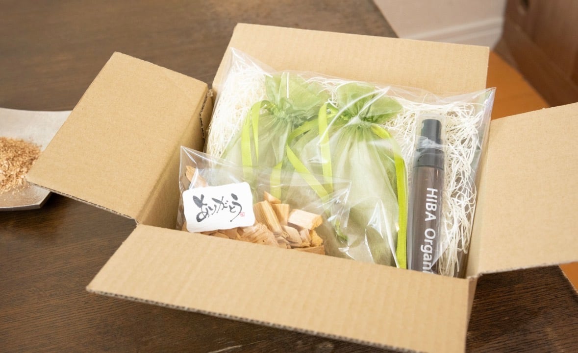 さらに、付属のヒバスプレーをサシェに軽く吹きかけることで、香りを自分好みに調整できます。